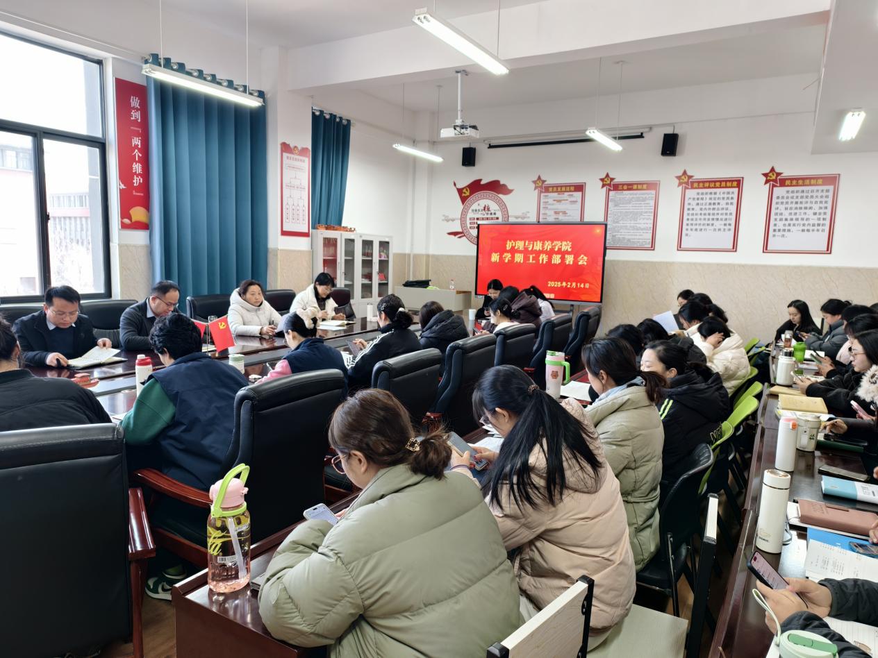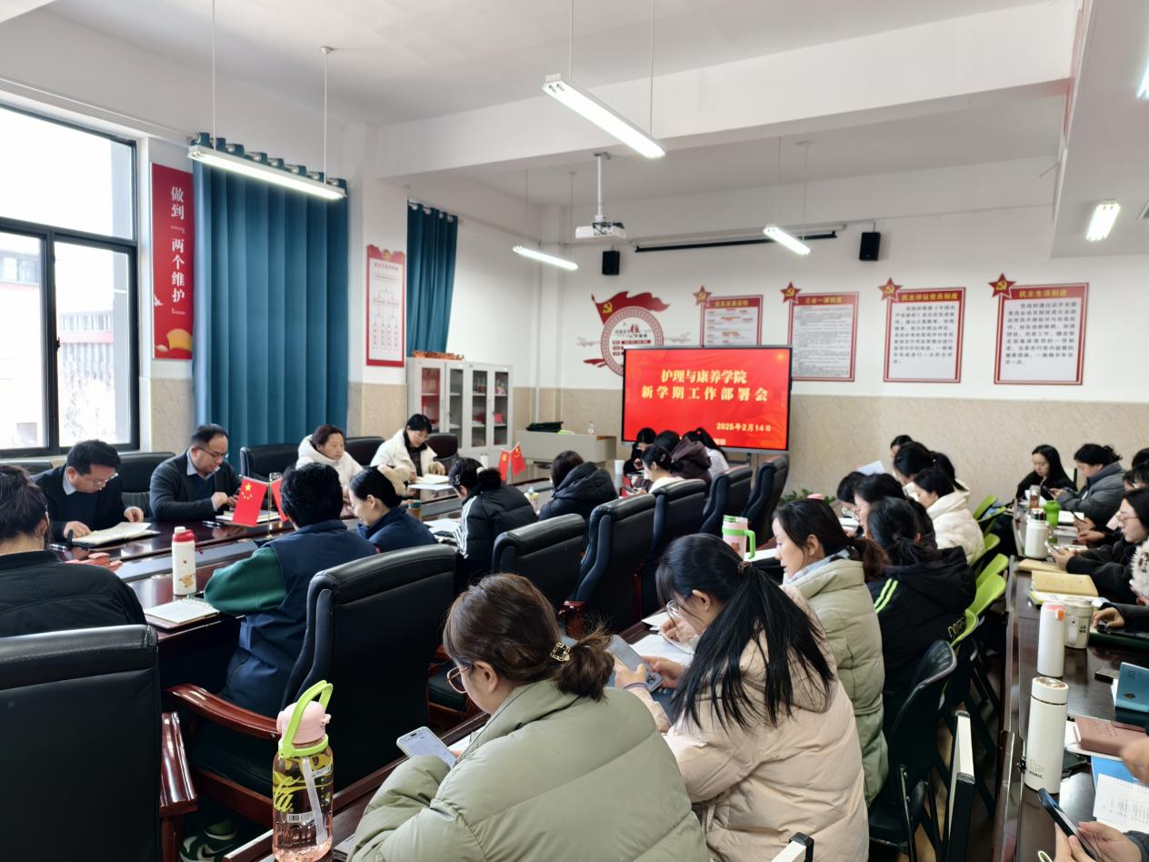 2月14日下午,护理与康养学院在9-313召开了新学期工作部署会,全面规划新学期的各项工作。全体教职工参加,旨在明确新学期的工作重点,确保学院各项工作有序推进。