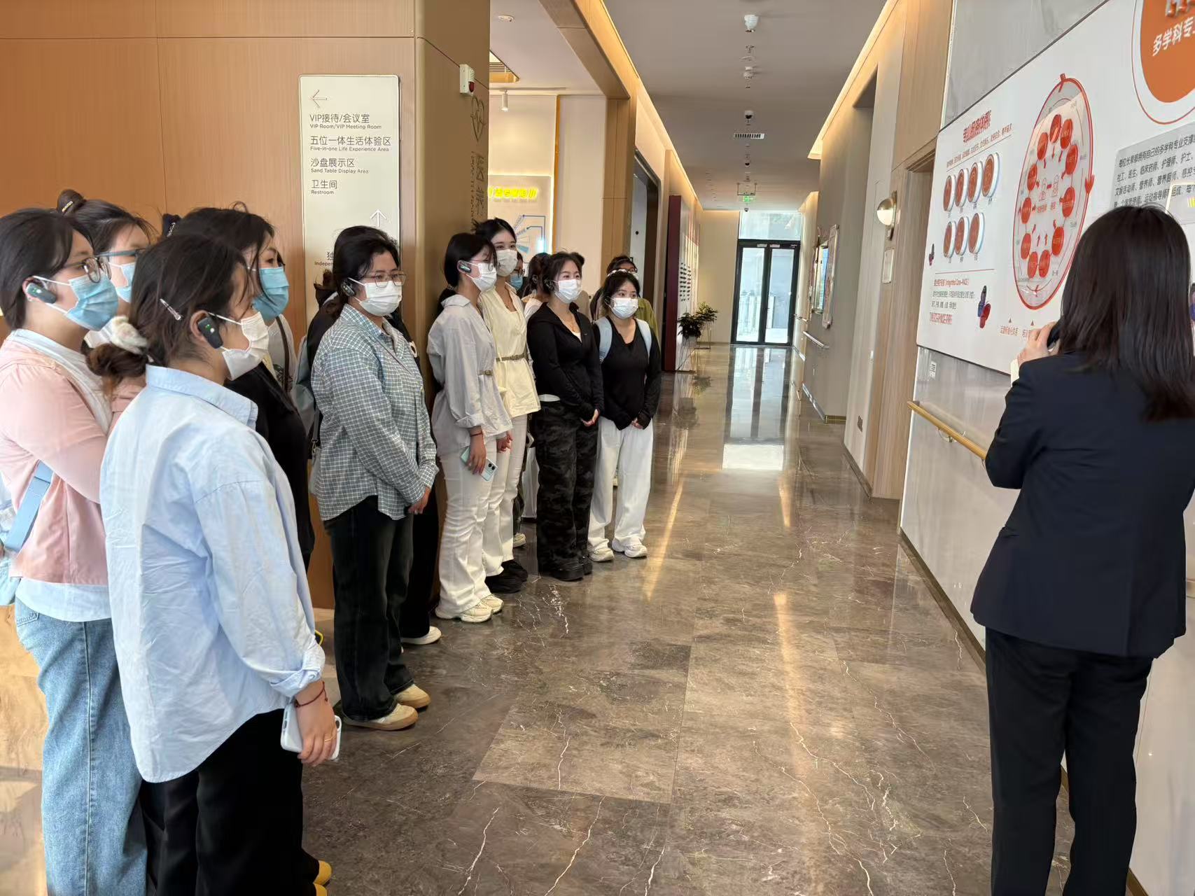 在泰康班班主任韩俊怡的引导下,同学们有序参观了泰康之家的生活居住区域、医疗护理中心、记忆照护专区、文化娱乐场所等多个功能区域。温馨舒适的居住环境、1+N的个性化照护服务、适老化设计细节、丰富的文娱活动、专业的康复医疗配套及“五位一体”生活方式使同学们进一步了解了老人们在泰康之家的生活日常,感受到了老人们在这里所获得的尊重与关怀,也体会到了积极健康的老年生活状态,对养老服务也有了全新的认识。