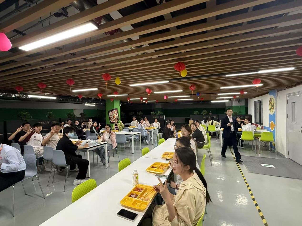 参观结束后,师生分别体验了居民餐和员工餐。同学们在轻松愉悦的氛围中品尝美食,同时还就上午的参观感受展开了热烈讨论,分享各自的收获与体会。
