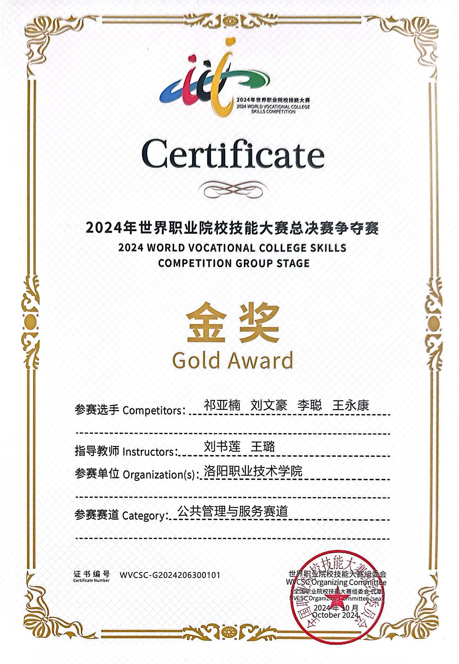 1 | 2024年世界职业院校技能大赛总决赛争夺赛金奖 | 世界职业院校技能大赛组委会 | 2024.10 |