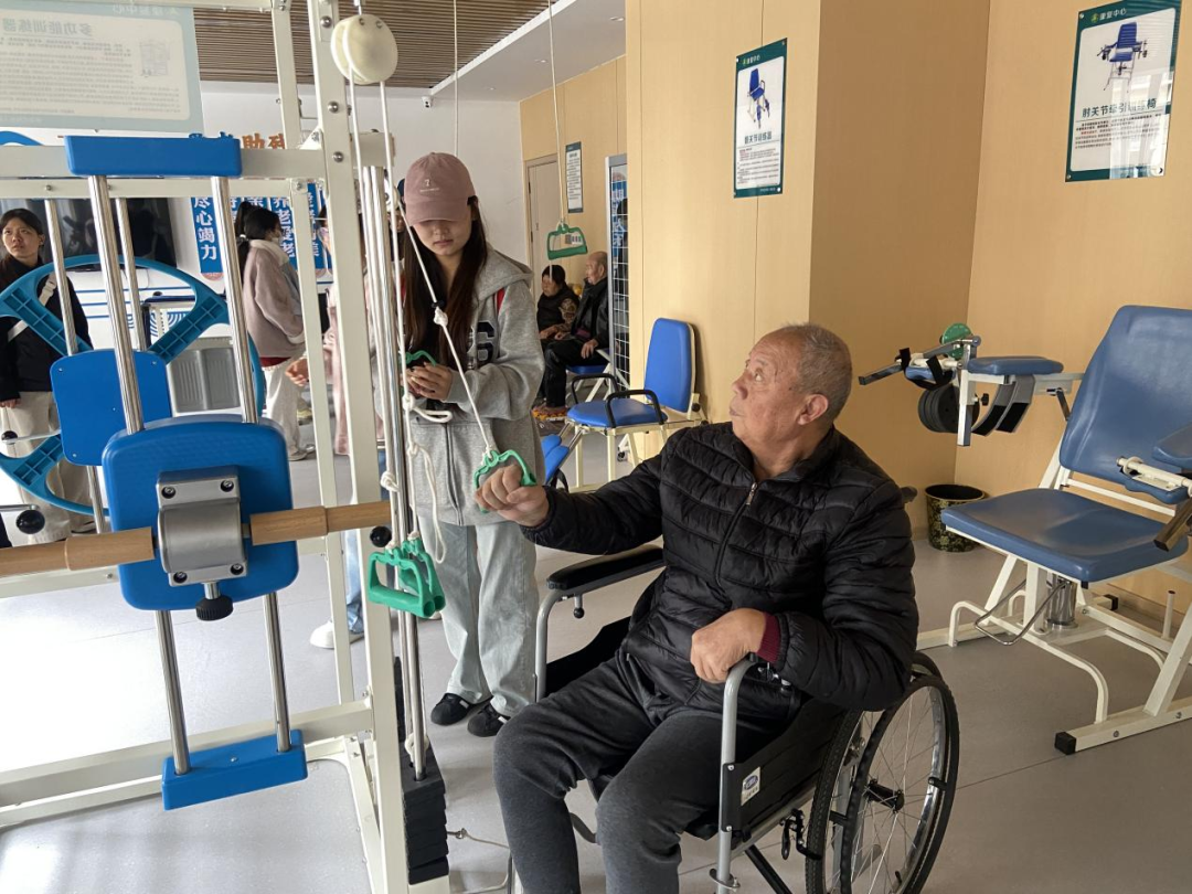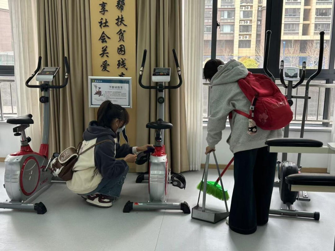 活动伊始,学生们分工协作,对康复训练室进行了全面打扫,擦拭器械、整理物品、消毒地面,为老人营造安全整洁的康复环境。