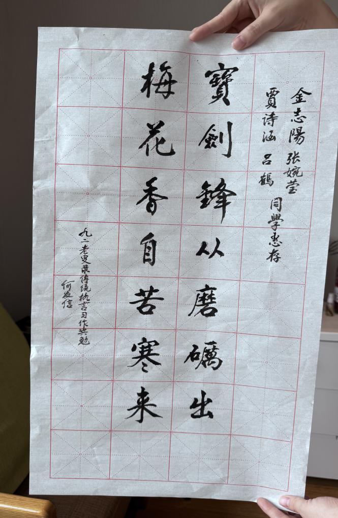 申园百岁老人赠予字画勉励学生