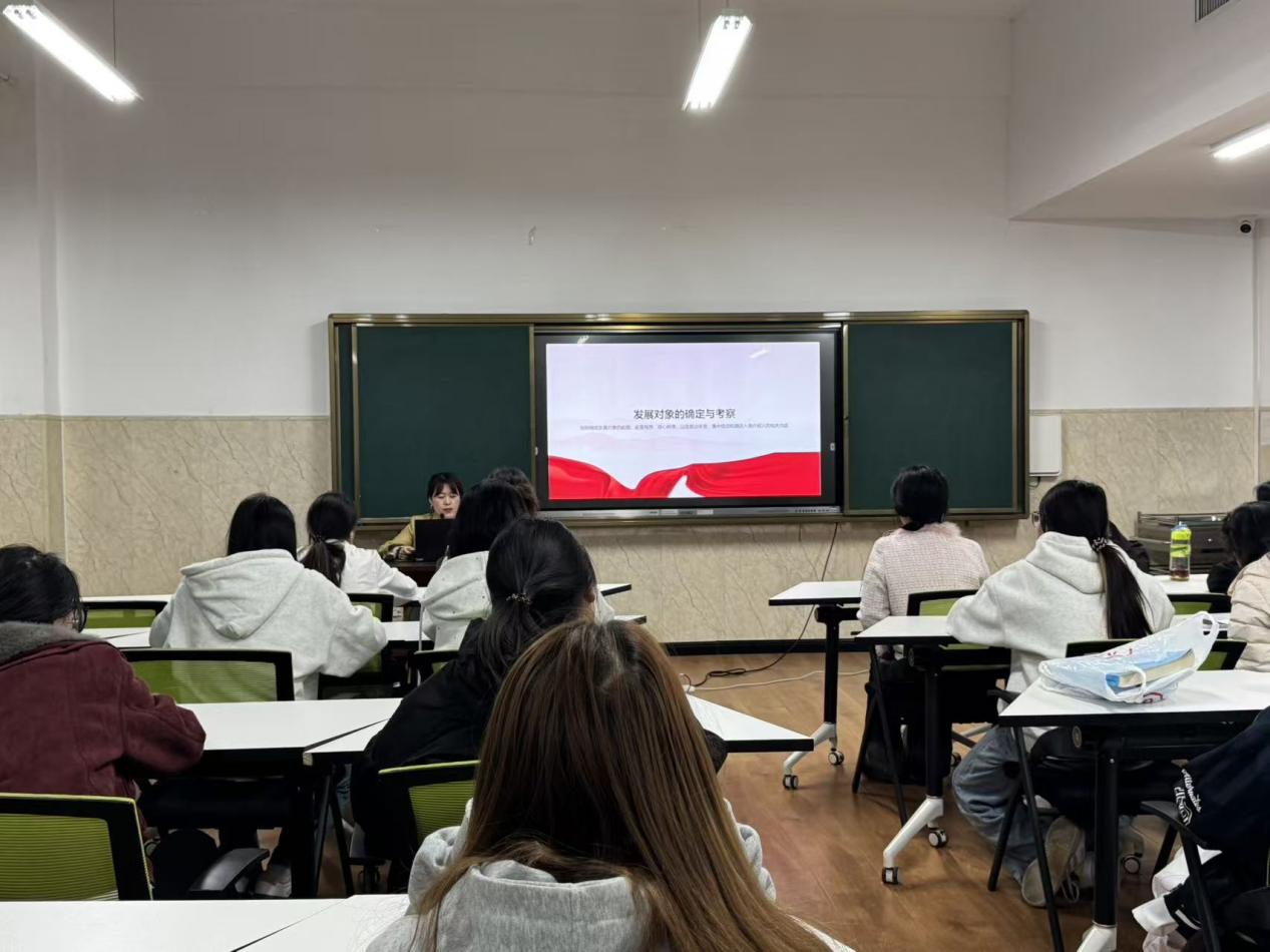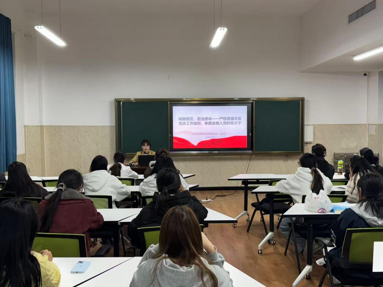 为规范发展党员工作,帮助2024级入党积极分子明确入党流程、强化责任担当,11月11日,护理与康养学院学生党支部开展2024级入党积极分子上党课活动。本次党课由学生党支部书记周柃楠主讲,全体2024级入党积极分子参会。
