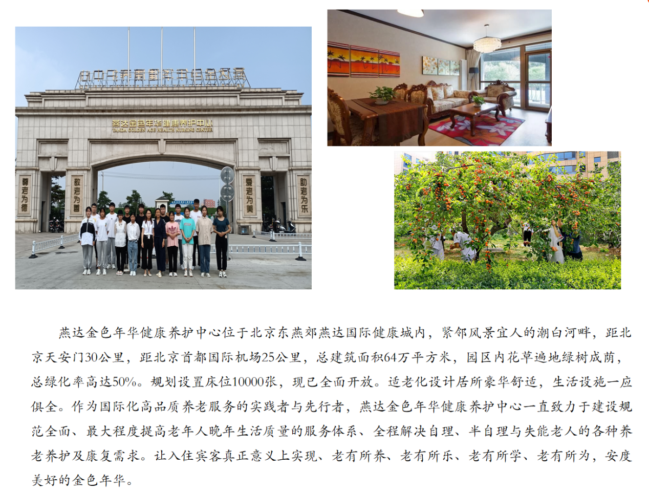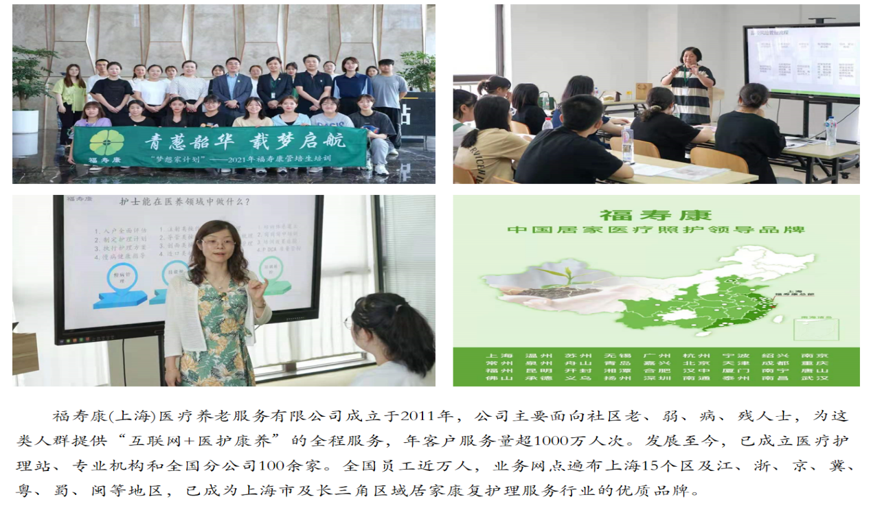 护理专业康养方向:在人口老龄化加速的大背景下,护理人员的服务领域从医院向慢病管理、老年护理、康复护理、安宁疗护等生命周期领域拓展,我院与北京燕达金色年华健康养护中心、上海九如城企业集团、福寿康(上海)医疗养老服务有限公司等达成校企合作,由学校统一安排接收实习,实习前已经取得护士资格证的学生,学校将会推荐其实习就业一体化,提前就业。