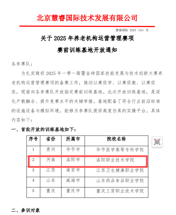 我校自10月份获评首批省级养老机构运营管理培训就业一体化基地以来,吸引了省内外高职高专、本科院校到校训练,其中参训学校邢台医学院荣获本次大赛本科组一等奖成绩,彰显了我校智慧健康养老服务与管理高水平专业群的引领作用。