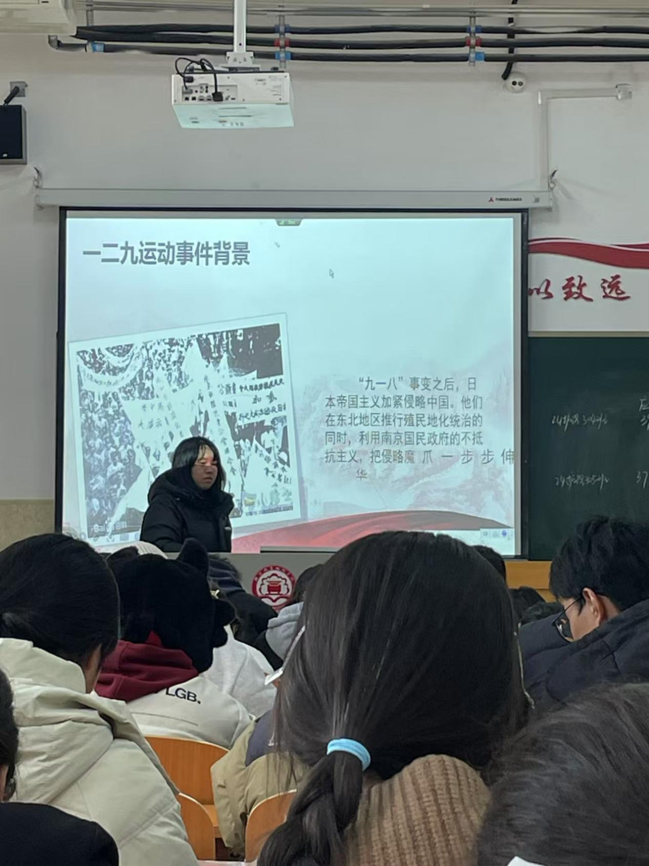 班会伊始,各班级围绕一二・九运动的历史背景、发展过程与深远意义,充分运用历史文献、经典纪录片片段、革命先辈英雄事迹等素材,通过PPT展示、主题演讲、红色纪录片展播等多样形式,生动再现了90年前爱国青年为争取民族独立、反抗侵略压迫而奋起抗争的壮阔场景,深刻阐释了运动中蕴含的爱国精神与时代价值。班会现场,同学们认真聆听、积极交流,纷纷分享自己对历史的感悟与对使命的理解,进一步坚定了“强国有我”的理想信念,明确了将个人理想融入国家发展大局的奋斗方向。
