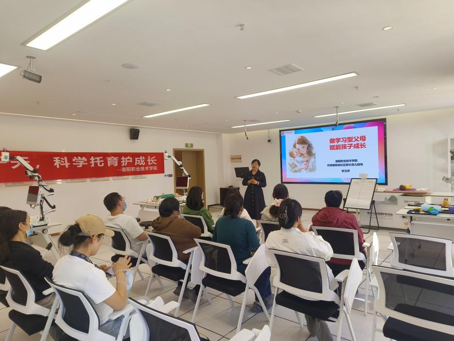 为积极响应洛阳市普惠托育服务发展示范项目建设号召,扎实推进“创新服务强基提质”工程,赋能社区家庭科学育儿。2026年4月17日下午,护理与康养学院关工委李玉萍老师带领学院托育服务志愿者团队,走进洛阳市伊滨区光武街道杨湾社区开展婴幼儿托育家长课堂公益授课活动,为社区家长们送上了一堂专业、实用的育儿指导课。